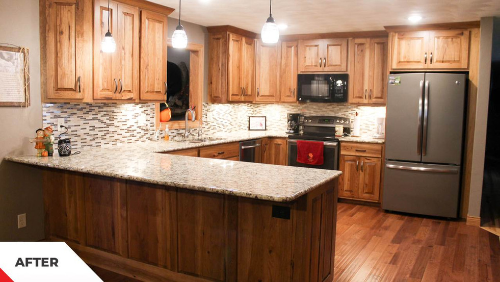 Barneveld, WIThis Kitchen remodel and Rec Room addition includes Custom Amish Hickory Cabinets, granite countertops, and hardwood flooring. The Rec Room has a cozy stone fireplace that adds comfort and warmth to the room.