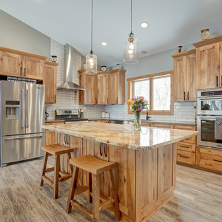 This home puts everything on one level for easy movement and entertaining. Zero entry features an open floor plan with vaulted ceilings. The spacious kitchen highlights quartz counter tops, tiled backsplash and Amish custom rustic hickory cabinetry. Everyone can meet in the middle at the kitchen’s extra-wide granite island. The wall oven and microwave combo is perfect for those large family gatherings.