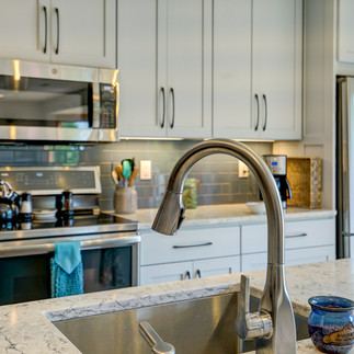 Mt Horeb - The downstairs family room was gutted to include a full kitchen and updated sitting area. LVT flooring was installed throughout the new area as well as the bathroom and bedroom. Painted cabinets were added to the new kitchen along with stainless steel appliances and glass subway tile backsplash. We added new LED lights and pendent lights over the island. The existing deck was removed and a TimberTec deck with cable rail was installed and LP siding on the back of the house. Kittleson Landscaping completed the beautiful landscaping around the pool and patio area. A dry space was created under the deck and is perfect to take a breather from the pool. The renovated family room and pool/patio area are ideal for entertaining friends and family all summer long!