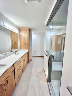 For the upstairs, we reconfigured a bathroom to make room for a large steam shower. We also built a walk-in closet and laundry room. While the redesign of this home was challenging, we were beyond satisfied with the end result.